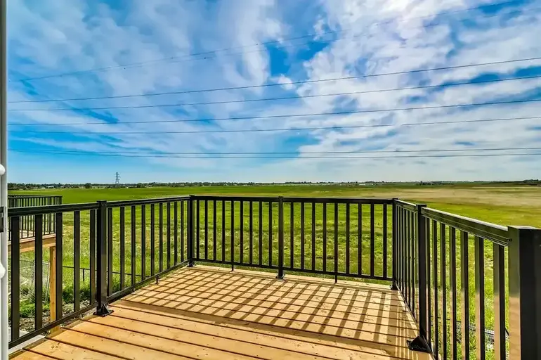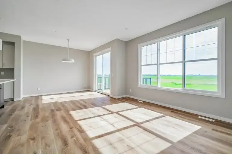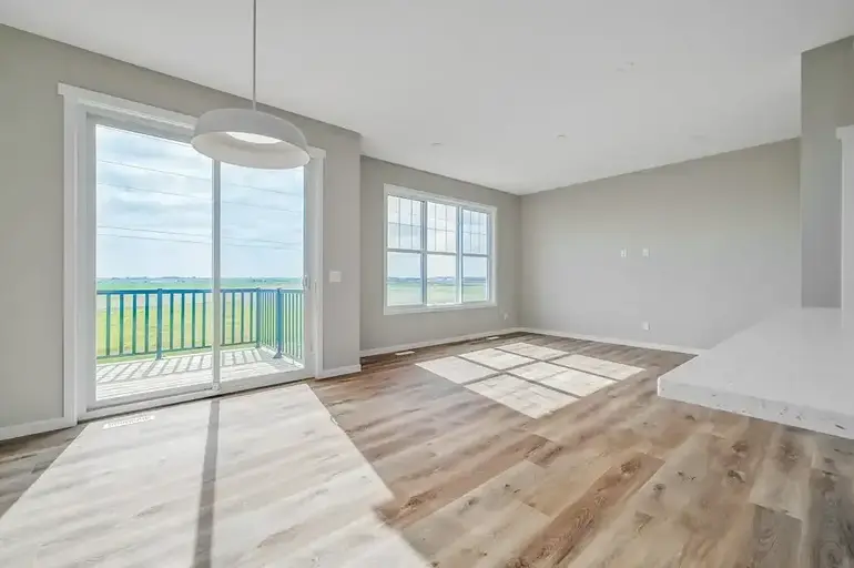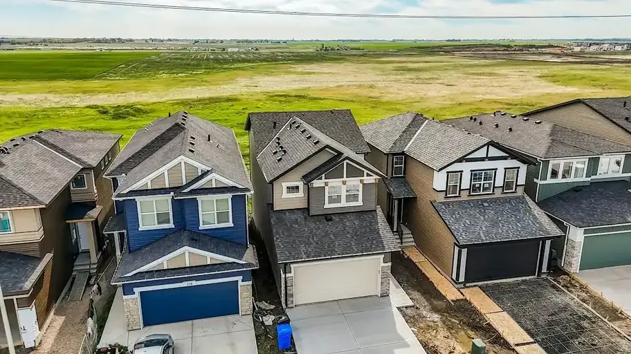 Welcome to this Modern 4 bedroom, 3 Bath home where contemporary design meets family-friendly functionality in the vibrant community of Hotchkiss. This beautifully crafted home spans almost 2,100 sq. ft., offering 4 spacious bedrooms, including a rare main-floor bedroom with a full bathroom – ideal for hosting guests or providing privacy for multi-generational families. Step into an open-concept dining area and lifestyle room, designed to make gatherings seamless and memorable. The soaring open-to-above living room brings an airy feel, while the electric fireplace adds a cozy touch for intimate evenings. The entertainment potential extends outdoors with a walkout lot and a generous 15’ x 20’ deck, complete with an exterior gas line for future BBQs, perfect for enjoying Calgary’s long warm summer evenings. The kitchen is a chef's dream, featuring an upgraded layout with a stylish chimney-style hood fan, built-in microwave, extra storage drawers, elegant quartz countertops, a large island and modern two tone cabinets. The thoughtful design carries throughout with black interior hardware and knockdown ceiling textures, lending a modern edge to every room. Upstairs, discover three more spacious bedrooms including a luxurious primary suite featuring a step-in shower– a perfect retreat after a long day. In addition, there are two generously sized kids' bedrooms that share a convenient 5-piece bathroom—with dual sinks—ensuring no morning delays. For even more convenience, the upper-floor laundry room is perfectly situated for easy access. The walkout basement is ready for future development with a 9-foot foundation, offering the opportunity for additional space. Located in the vibrant community of Hotchkiss in southeast Calgary, This home provides easy access to stunning mountain views, 51 acres of park space, walking pathways, and a central wetland. Hotchkiss is designed with families in mind, offering plenty of green spaces and connectivity, making it the perfect place for your family to grow.