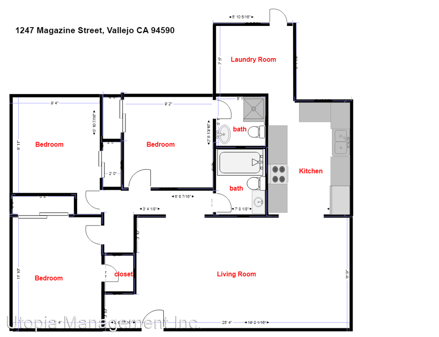 Wonderful 3 Bedroom, 2 Bath Home - Freshly remodeled and ready for occupancy. Home features 3 bedrooms, 2 bathrooms with central air conditioning. Kitchen equipped with granite counter tops, built in dishwasher and plenty of cabinet space! Laundry room right off the kitchen with hook ups only. One car garage. Available Now! No pets. Requirements: Clean credit report with a minimum combined average score of 625. Must show proof of income. Income must be at least 3 time the amount of the rent. More Information: https://utopiamanagement.com/properties/vallejo-property-management-1247-magazine-street DRE #01197438