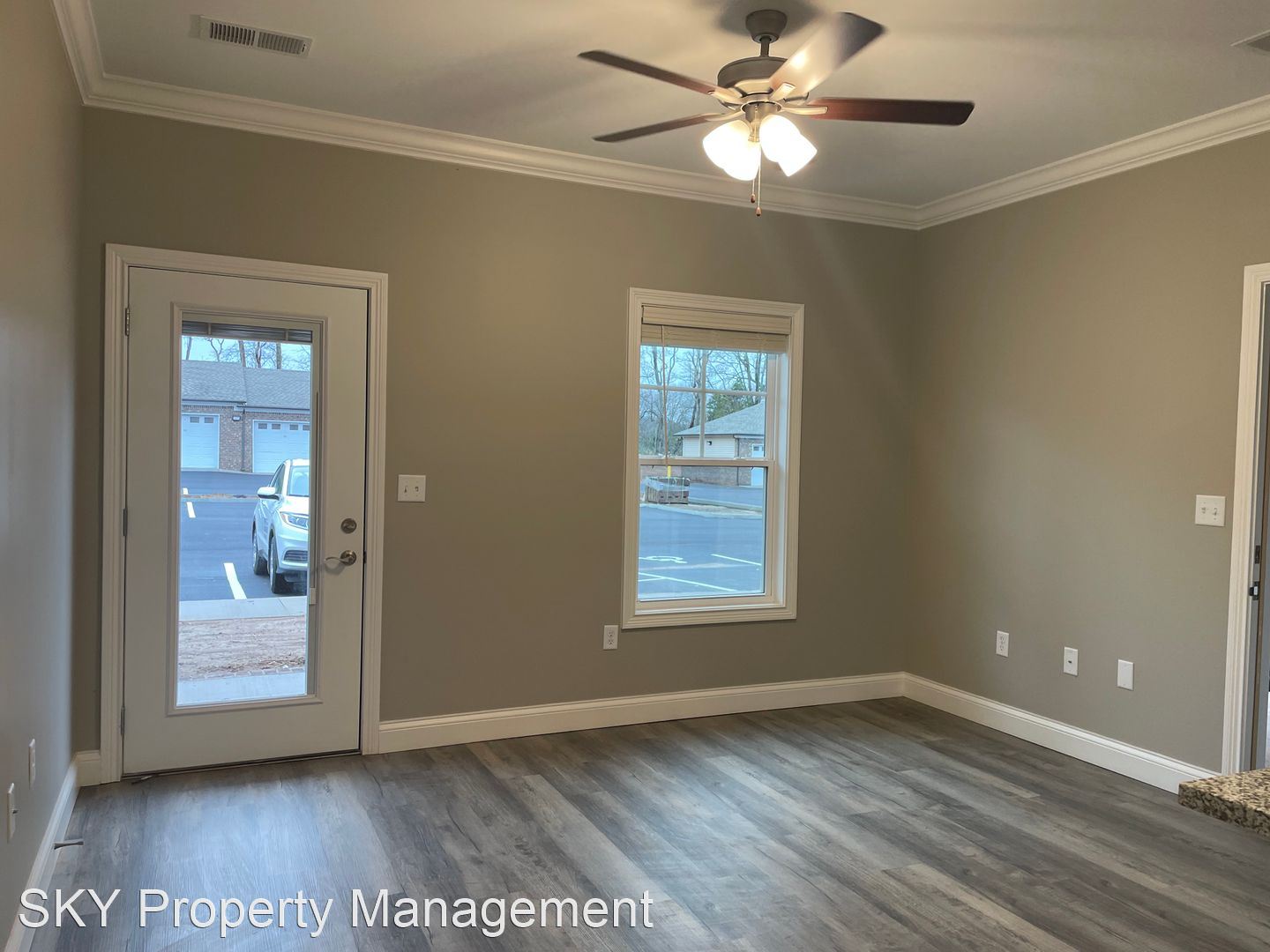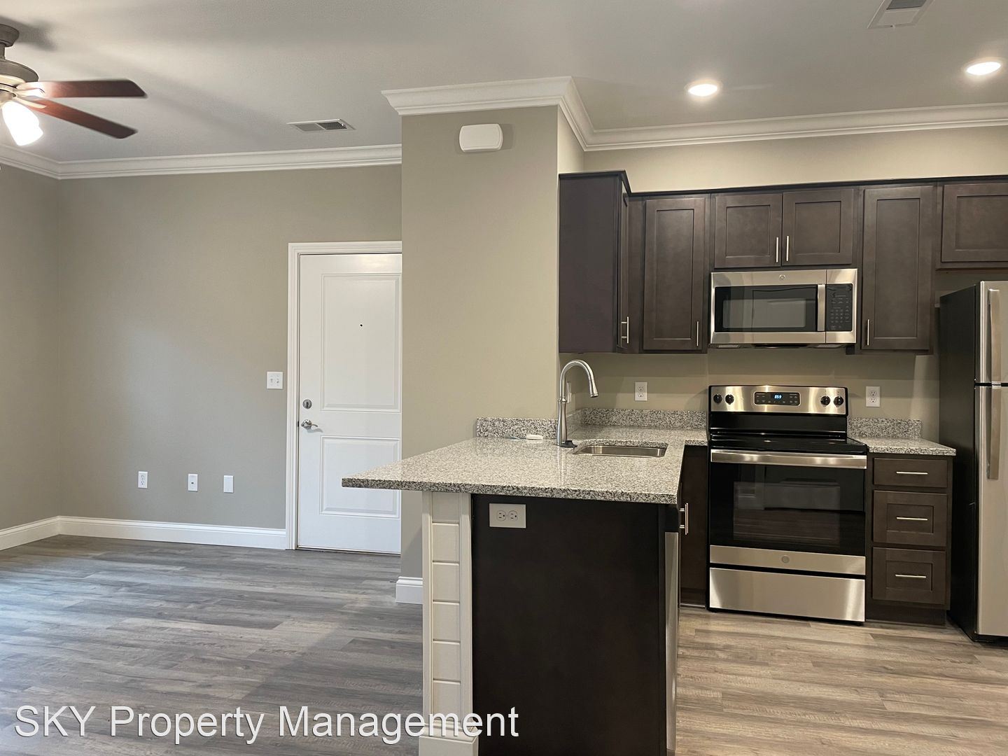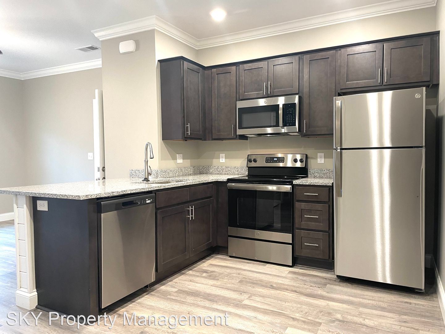 The Flats - Second-Floor Open Concept Flat Stainless Steel Kitchen Appliances Granite Counters Side by Side Washer and Dryer Connection Hardwood Laminate Throughout Patio with Outdoor Storage Closet
