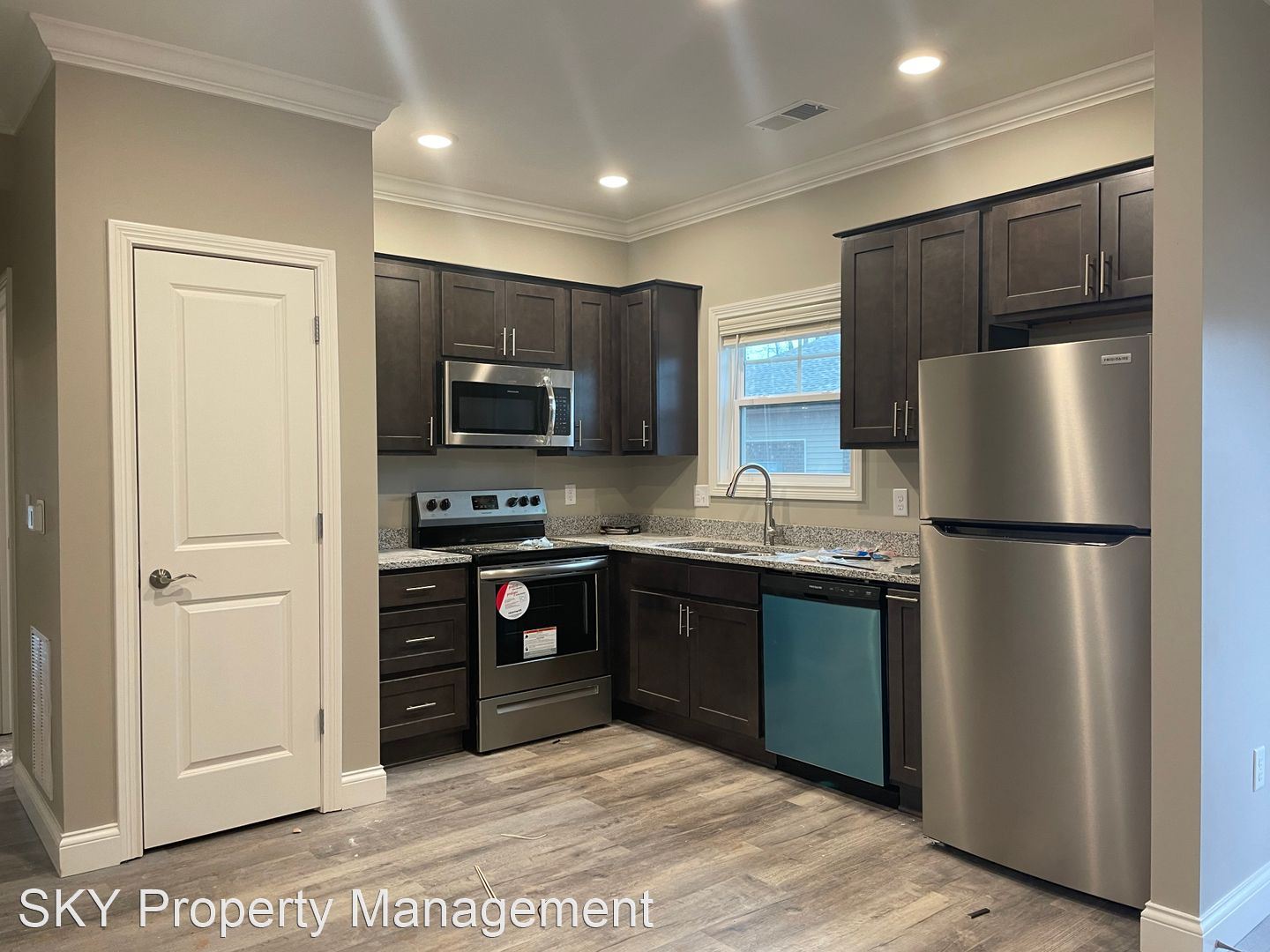 The Flats - First-Floor Open Concept Flat Stainless Steel Kitchen Appliances Granite Counters Side by Side Washer and Dryer Connection Hardwood Laminate Throughout Patio with Outdoor Storage Closet